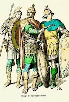 * Homens e mulheres usavam túnicas fechadas, longas ou curtas com mantos sobrepostos longos e volumosos;